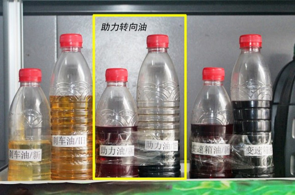助力转向油的品质判别稍微困难一些,因为没有参照标准,但一般来说新的助力转向油一般偏红色,并且具有一定的透明度,而长时间使用的助力转向油则会变黑,透明度会大幅降低。